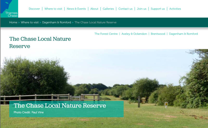 The Chase is a nature reserve in Dagenham in London. Most of it is in the London Borough of Barking and Dagenham, with a small part in Havering. It is owned by the boroughs, and managed by London Borough of Barking & Dagenham - Parks & Countryside Ranger Service.[1][2] The boroughs have designated the sections in their respective boroughs as Local Nature Reserves.[3][4] The Chase, together with the neighbouring Eastbrookend Country Park, is also designated a Site of Metropolitan Importance for Nature Conservation.[5]