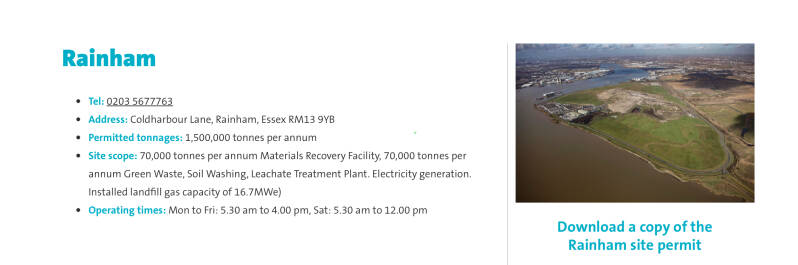 The marshes to the west of the nature reserve have been used as a landfill site for rubbish from London and the local area. Rainham Landfill is operated by Veolia ES Landfill Limited.[19] The site occupies an area of 177 hectares, and accepts up to 1,500,000 tonnes per year. This includes up to 70,000 tonnes per year in a Materials recovery facility and 70,000 tonnes per year of Green Waste.[19] There are facilities for soil washing and a Leachate Treatment Plant. The decomposition of organic matter within the landfill generates a gas containing up to about 50 percent methane. This landfill gas is collected by a network of pipes and since 2001 has been used in an onsite power station. The station is owned and operated by EDL. The plant comprises eight 1.25 MW, three 1.4 MW, two 1.1 MW and one 1.0 MW reciprocating engines which drive electricity generating sets.[20] The electricity produced is fed into the National Grid. The station has a generating capacity of 17.8 MW and typically generates 95 GWh of electricity per year. This is equivalent to powering 14,600 homes. The site is expected to produce landfill gas for electricity generation to beyond 2030.